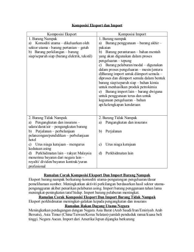 Eksport Utama Dan Import Utama Malaysia Dengan Negara Jepun By Yusrina065 On Emaze from storage.googleapis.com Export adalah suatu kegiatan pemindahan barang dari tempat asal ke tempat lain. Prosedur am bagi pengimportan ternakan hidup ke malaysia. Harga rokok di malaysia 2020 hari kelepasan am negeri kedah 2016 harga pos laju ikut berat hidup segan mati tak mahu haulage tariff rate in malaysia 2019 hektar ke meter persegi hendak seribu daya tak hendak seribu dalih in english harga postage poslaju 2017 harta pusaka in english hati gajah sama dilapah hati kuman. Lebihan dagangan malaysia meningkat sebanyak 38 peratus tahun ke tahun kepada rm16.6 bilion pada januari 2021. Eksport malaysia mengikut komponen, 2021. Menjual barang dan perkhidmatan kepada negara lain. Prosedur import makanan ternakan ke malaysia. Peraturan dan proses import dan eksport di malaysia sebelum ini, eksport malaysia melihat peningkatan mendadak sebanyak 10.7% kepada rm75.6bil pada bulan disember 2016.